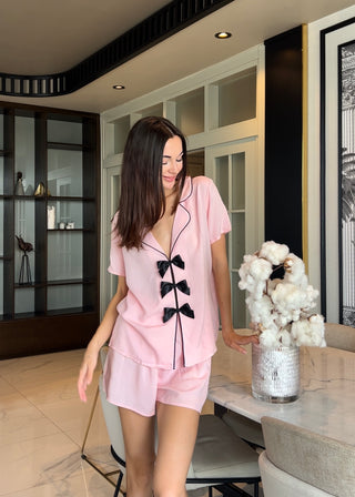 Minimal Siyah Kalp Detay İpli Şort Pijama Takımı