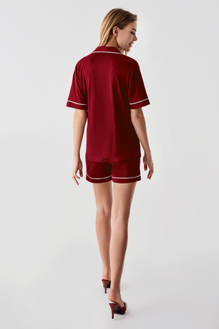 Premium Bordo Gömlek Yaka Kısa Kollu Pijama Takımı