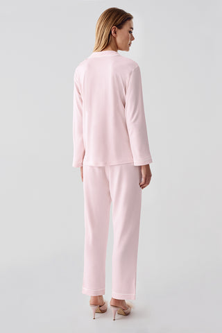 Premium Pudra Gömlek Yaka Uzun Kollu Pijama Takımı