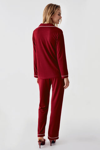 Premium Bordo Gömlek Yaka Uzun Kollu Pijama Takımı