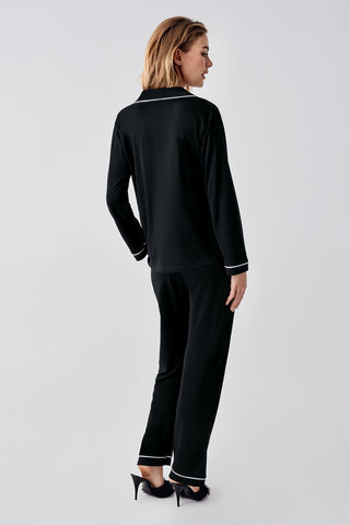 Premium Siyah Gömlek Yaka Uzun Kollu Pijama Takımı