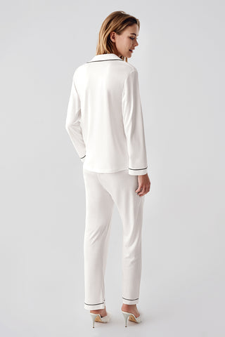 Premium Beyaz Gömlek Yaka Uzun Kollu Pijama Takımı