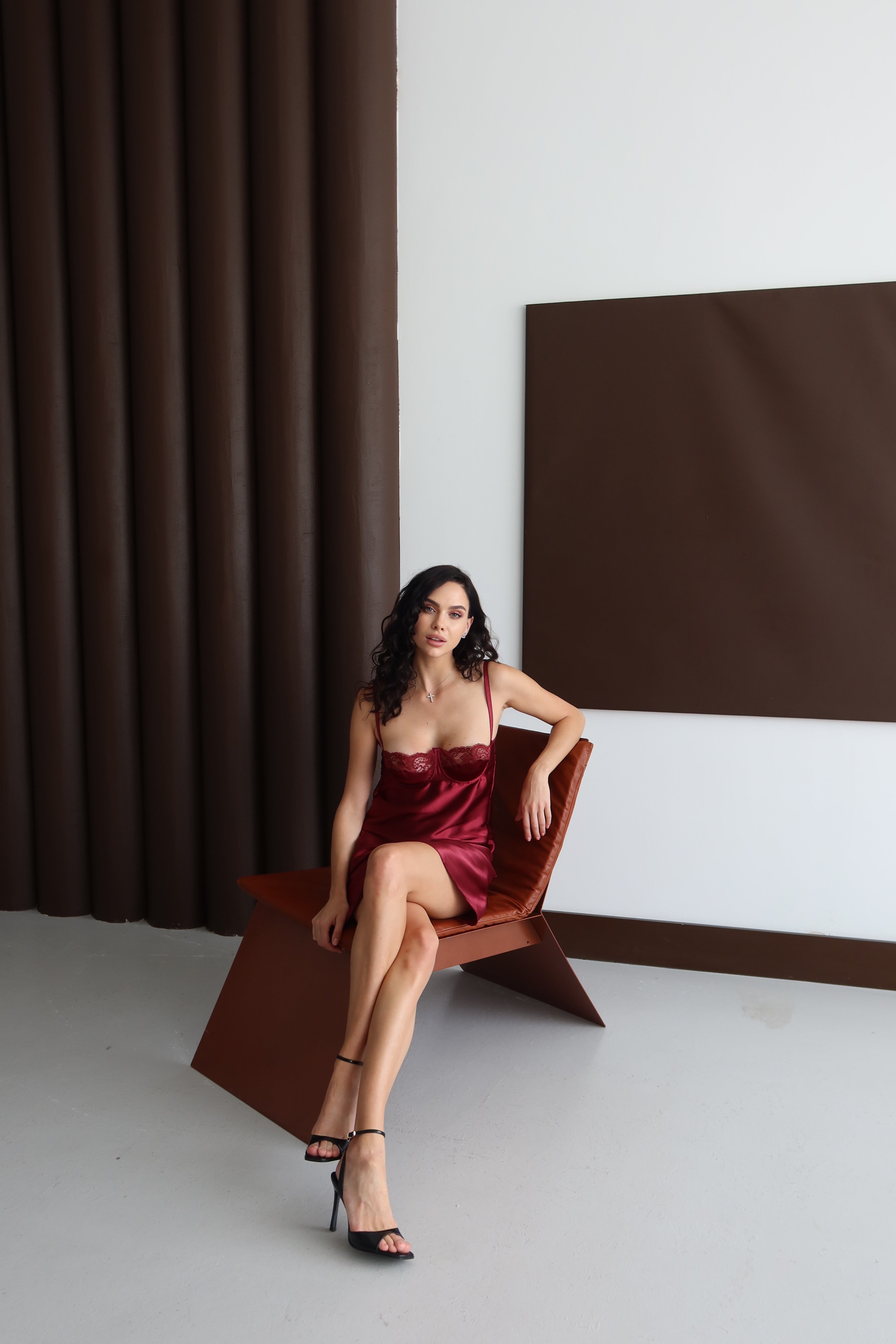 Bordo Saten Gecelik