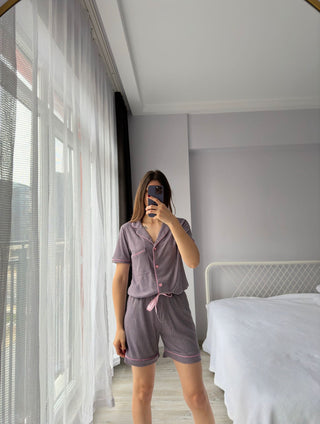 Lilac Shirt Collar Set with Shorts