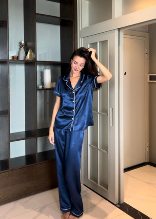 Minimal Siyah Kalp Detay İpli Şort Pijama Takımı